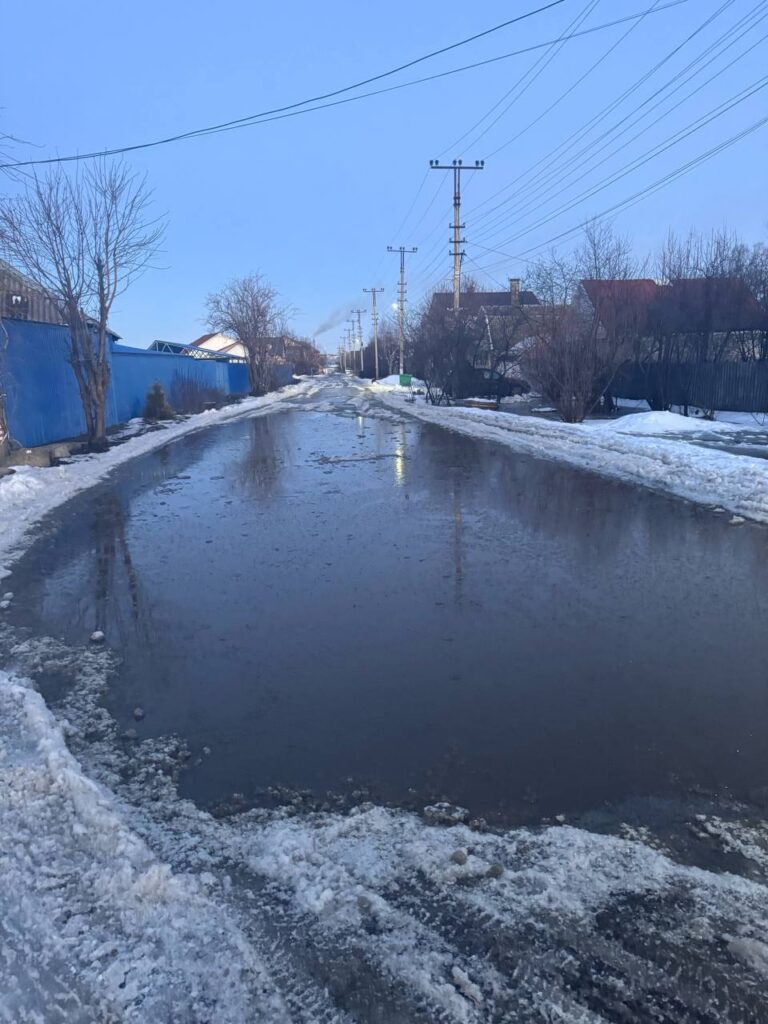 А это уже другие улицы : тут лужа за лужей,полынья за полыньей и асфальт то же по все вероятности перестанет быть пригодным для езды. Так что пока в одном месте "латают" дыры на дорогах,на других они образуются.