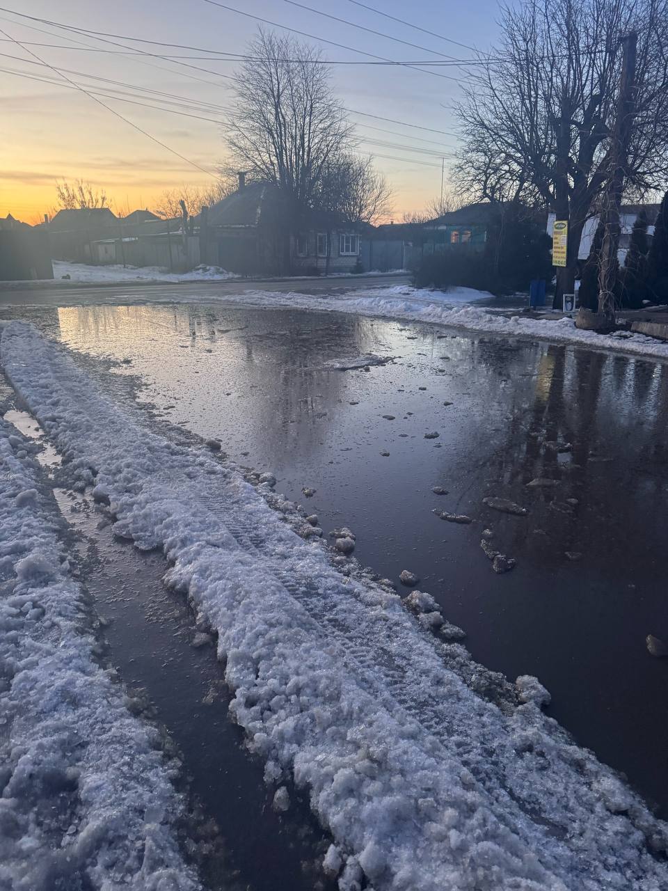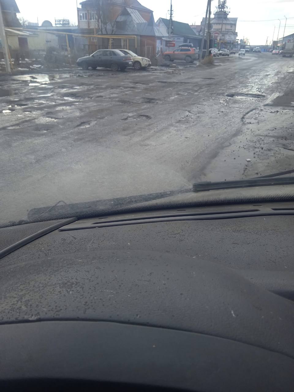 А это уже другие улицы : тут лужа за лужей,полынья за полыньей и асфальт то же по все вероятности перестанет быть пригодным для езды. Так что пока в одном месте "латают" дыры на дорогах,на других они образуются.