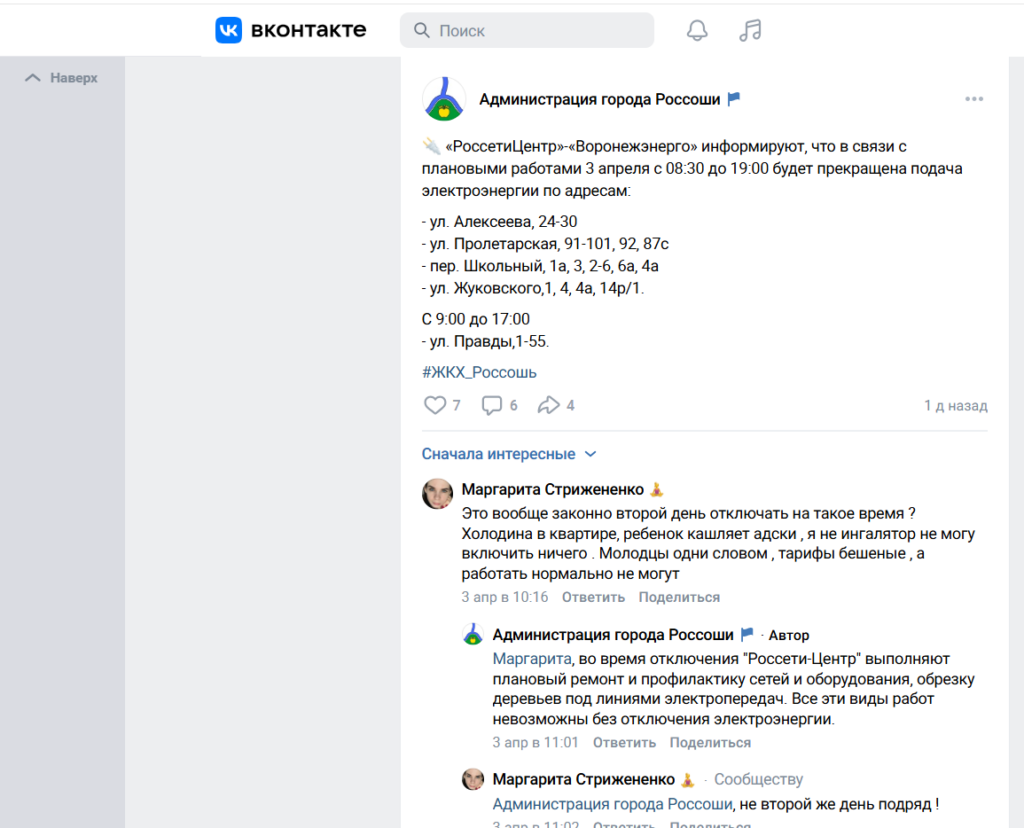 Жители Россоши всё чаще сталкиваются с отключениями электроэнергии — объявления от городской администрации о «плановых ремонтах» уже стали для них ежедневным кошмаром.