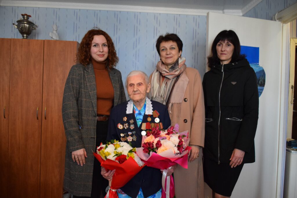 По поручению главы администрации района Романа Береснева и главы города Максима Киселя юбиляра поздравили руководитель аппарата администрации района Людмила Кушнарева и помощник главы города Яна Чернова. Марии Никоноровне пожелали крепкого здоровья и бодрости, выразили глубокую благодарность за ратный труд и вклад в воспитание молодого поколения личным примером.